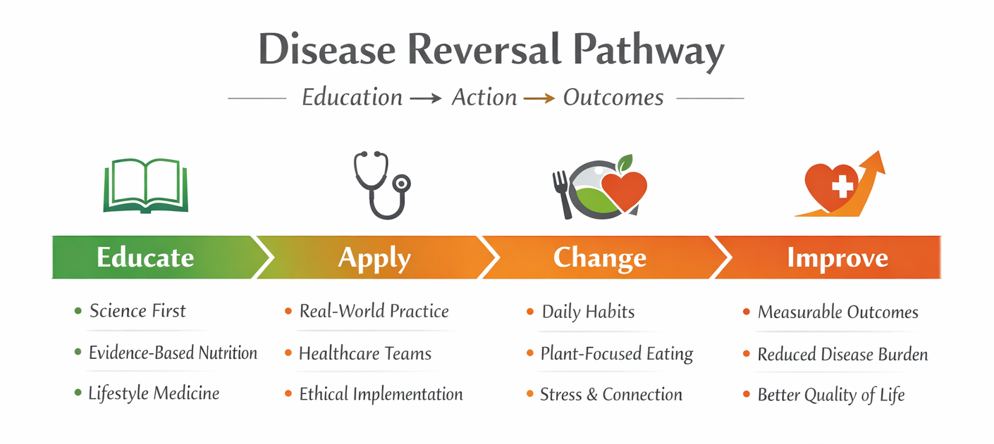 The Plantrician Project exists to translate this science into education, training, and practical tools that empower healthcare professionals and changemakers to put disease reversal into action.
